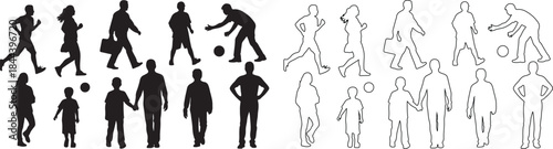 people, silhouette, vector, icon, outline, human, figure, set, collection, walking, running, standing, playing, diverse, action, pose, graphic, design, illustration, symbol, pictogram, modern, simple, minimalist, activity, movement, children, family, man, woman, isolated, transparent, web, app, infographic, map, architecture, urban, social, community, leisure, sport