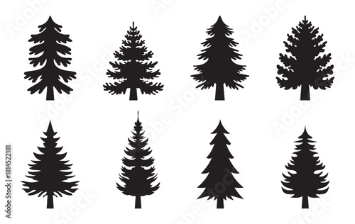 set of Douglas Fir tree vector silhouette illustration isolated on white background