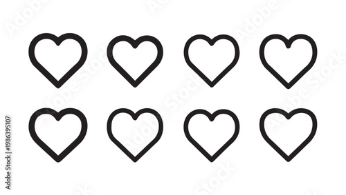 Set of Eight Simple Heart Outline Icons