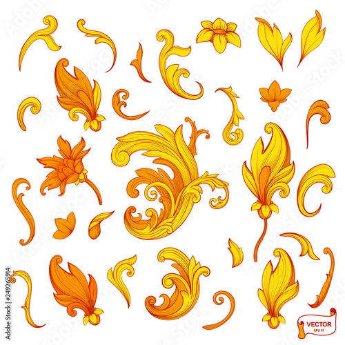 Set of element baroque engraving floral scroll