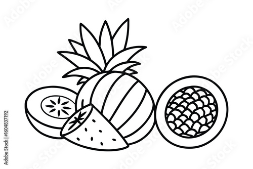 exotic, juicy, fruit, with, fruit, food, delicious, flavorful, tropical, unique, strange, interesting, harvest, harvested, fresh, healthy, snack, edible, organic, natural, graphic, illustration, design, vector, art, set