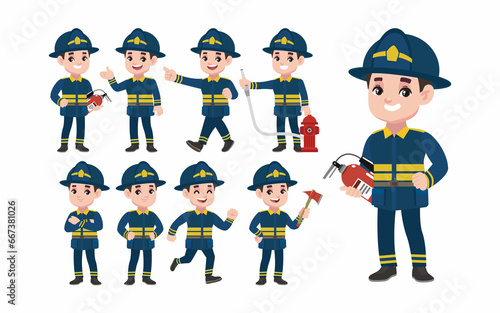 Set of fireman with different poses