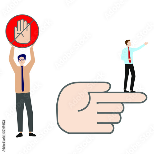 Set of flat cartoon character isolated with man and stop sign, man and hand cursor