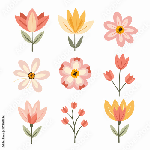 Set of flowers in the Scandinavian style.Flower collection with leaves, floral bouquets. Folk style.