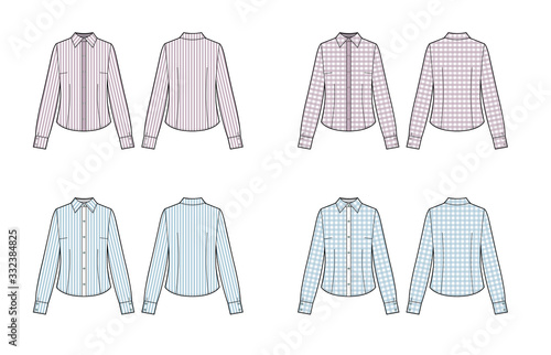 shirt, blank, design, female, clothing, fashion, white, textile, shopping, glamour, elegance, vogue, sewing, cotton, wear, colours, stylish, beauty, style, accessory, classic, elegant, apparel, girl, buttons, blouse, vector, clothes, garment, casual attire, lady, woman, sleeve, long, modern, contemporary, sale, designer, illustration, front, formal, template, tee, jacket, outline, isolated on white, set, many-coloured, print