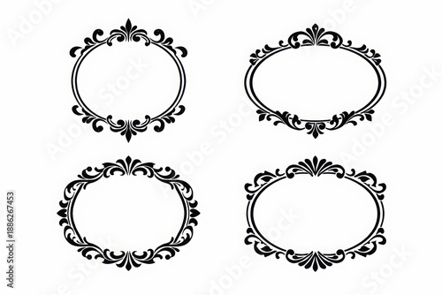 ornate, oval, frame, floral, design, black, border, decorative, element, graphic, template, vintage, style, art, embellishment, ornament, pattern, swirl, leaf, motif, filigree, scroll, work, set, 4, shape, silhouette
