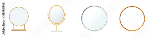Set of Four Round Mirrors with Gold and Silver Frames on White Background