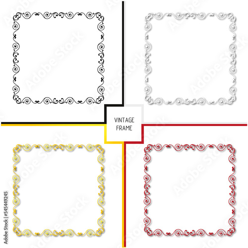 Set of frames in vintage style with elements of ornament, art.