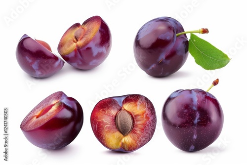 Set of fresh fruit plums isolated on a white background with a clipping path.