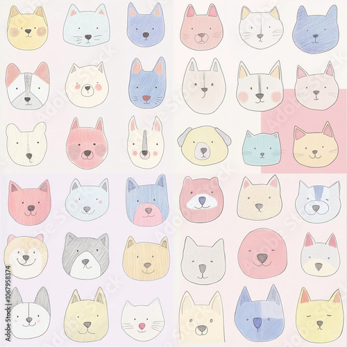 animal, dog, cartoon, pet, vector, illustration, cat, mammal, puppy, cute, funny, breed, head, dog, design, baby, character, drawing, fun, icon, domestic, happy, smile, canino, wolf, pattern, seamless, set, bear, animal, love, art, rabbit, wallpaper, pink, pig, children, collection, lion, cow, face, tiger