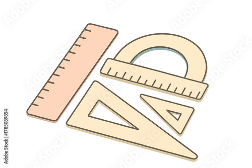 Set of geometric measuring tools including ruler, protractor, and set squares