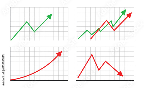 Set of Graphs Showing Financial Market Trends with Arrows and Grid Background – Vector Illustration