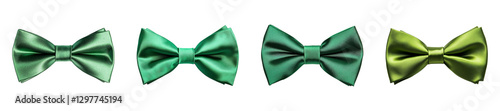 Set of green bow tie isolated on transparent background, in PNG format, cut out