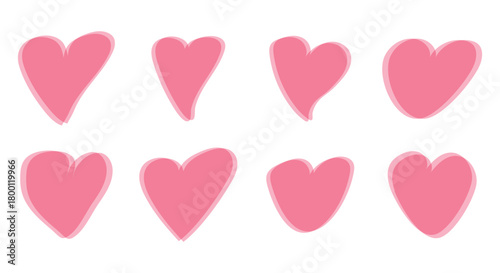 Set of hand drawn pink hearts isolated on white background, a collection of doodle elements for creative design projects and love themes