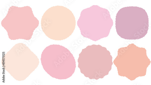 Set of hand drawn style cute memo sticker. Variety abstract shapes of pink speech bubble. Girl style frame with crayon draw. Chat box balloon cloud. Sweet retro label tag collection vector for text