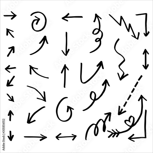 Set of Hand drawn vector arrows doodle on white background.design element vector illustration.