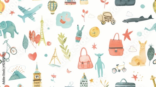 Set of holiday elements travel decoration watercolor decoration