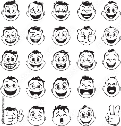 vector, illustration, graphic, icon, face, expression, emotion, human, people, character, cartoon, fun, happy, sad, wink, laugh, smile, thumb, up, design, element, abstract, black, monochrome, outline, set, pack, head, feeling, art