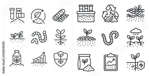 icon, symbol, line, set, leaf, vector, design, isolated, outline, nature, signs, plant, flat, illustration, organic, environment, tree, linear, thin, element, agriculture, growth, art, collection, food, gardening, seed, ground, care, flower, graphic, simple, concept, background, fertilizer