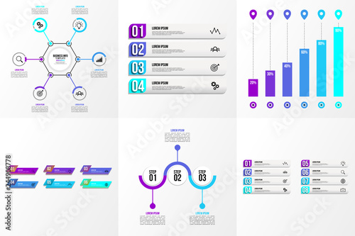Set Of Infographics Elements Vector Design Template. Business Data Visualization Infographics Timeline with Marketing Icons most useful can be used for workflow, presentation, diagrams, reports