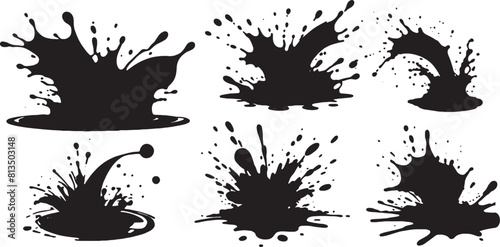 set of Ink drops and splashes, liquid paint, artistic black abstract spot vector set, Illustration monochrome drop splash