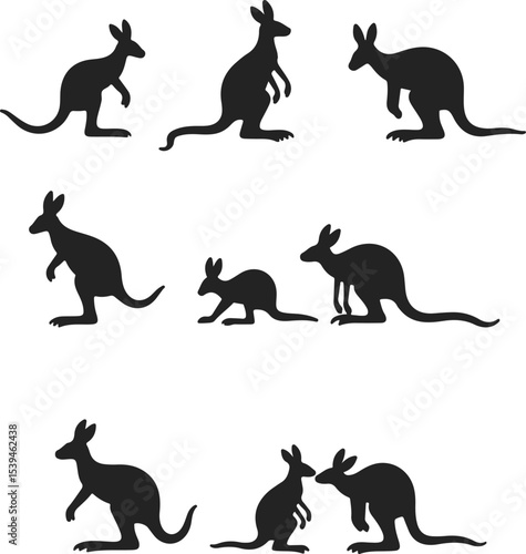 Set of Kangaroo Vector Silhouettes in Black Illustration Style