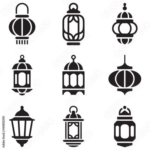 Set of lantern icons, vector illustration Vector Black silhouettes. with white background