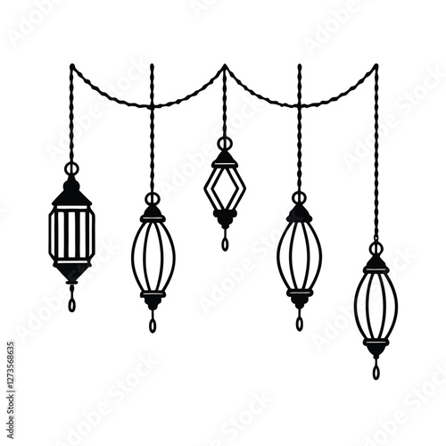 set of lanterns hanging from above vector art illustration
