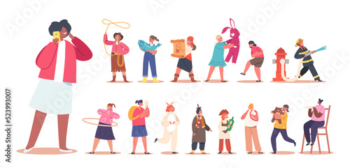 set, girl, little, fun, costume, children, activity, character, isolated, playing, firefighter, indian, pirate, recreational, people, vector, fairy, princess, baby, children, children, toy, game, recreation, kindergarten, toddler, person, small, family, school, childcare center, leisure, happy, childhood, development, preschool, creative, cute, fireman, indigenous, profession, job, home, white, background, cartoon, illustration, clip art