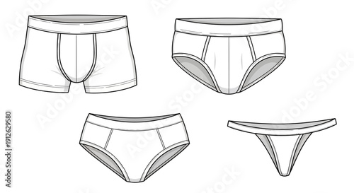 underclothing, boxer, brief, thong, lingerie, male, dessous, fashion, vignetting, apparel, design, clothing, illustration, line, art, technical, drawing, pattern, making, garment, template, bottom, wear, menswear, style, anatomical, cut, and, sew, textile, underpants, blueprint, sewing, style, white, background, isolated, vector, graphic, set, collection, outline