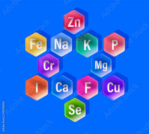 mineral, microelement, health, healthy eating, medicine, science, scientific, dietary supplement, drug, biology, chemical, element, essential, food, symbol, icon, education, chemistry, clinical, research, diet, nourishment, healthy, health care, vector, illustration, trace element, balance, nutrient, set, abstract, concept, calcium, zink, sodium, potassium, phosphor, chromium, magnesium, iodine, fer, copper, iron, selenium