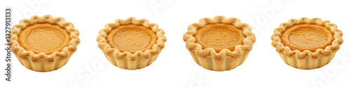 pie, mini, small, individual, pumpkin, dessert, pastry, crust, orange, filling, food, isolated, studio, lighting, sweet, creamy, baked, thanksgiving, holiday, traditional, entire, complete, whole, contained, visible, autumn, fall, spice, miniature, set, collection