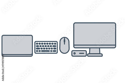 computer, peripheral, monitor, keyboard, mouse, laptop, desktop, modern, hardware, set, technology, electronic, equipment, minimal, digital, workspace, computing, screen, input, output, display, device, collection