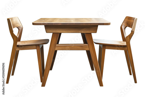 Set of modern wooden table with chairs isolated on a transparent or white background, cut-out, PNG