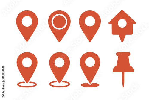 Set of navigation icons featuring location markers, house symbol, and pushpin design for various applications and uses