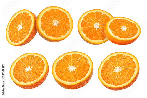 Set of orange slices cut in half Isolated on white background PNG.AI GENERATED