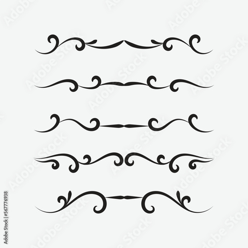 Set of ornamental filigree flourishes and thin dividers. Classical vintage elements, vector illustration