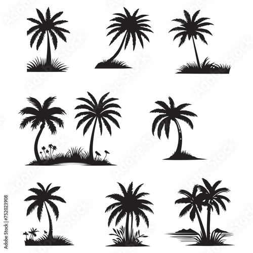 set of palm trees, Isolated palm on the white background. Palm silhouettes.