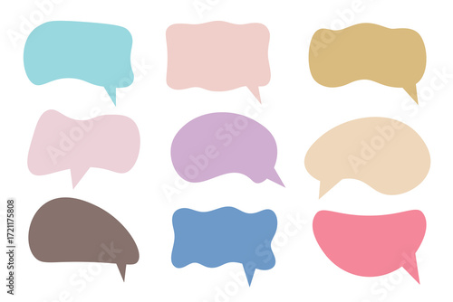 Set of pastel doodle speech bubble icons. Vector organic abstract frames. Liquid bubble backgrounds. Trendy palette. Empty text field.
