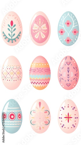 set of Pastel pink Easter egg assortment with playful nature floral patterns, spring holiday themes and craft inspiration