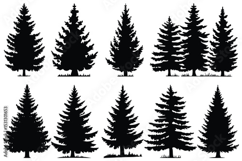 Set of Pine Tree Silhouettes | Vector Evergreen Tree Shapes for Forest and Winter Design