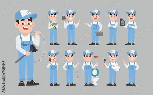 Set of plumber with different poses