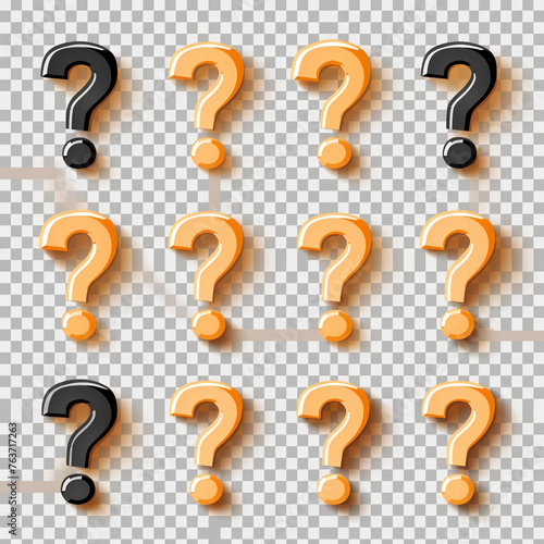 set of realistic question marks isolated on a transparent background