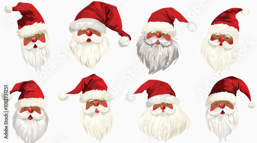christmas, santa, hat, holiday, claus, christmas, vector, winter, celebration, cap, icon, illustration, decoration, gift, symbol, santa, red, merry, cartoon, set, snow, season, fur, new year, tree