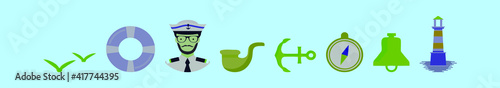 set of seaman element cartoon icon design template with various models. vector illustration isolated on blue background