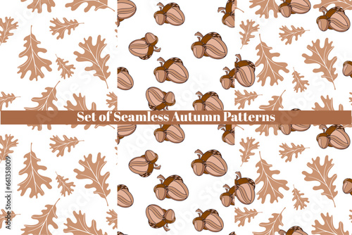 set of seamless autumn patterns with mushrooms, leaves. vector illustration, hand drawn autumn elements