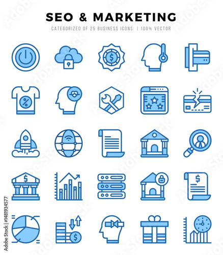 Set of SEO & Marketing Icons. Simple Two Color art style icons pack.