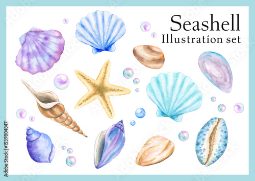 seashell, conch, watercolor, starfish, scallop, sea, shell, pearl, hand-drawn, pearl oyster, bivalve, decoration, accent, star, stylish, handwritten, summer, july, august, cute, summer getaway, beautiful, icon, mark, riverside, illustration, pale, waterdrop, fossil, vector, realistic, colourful, set, flier, sticker, card, beach, nature, design, ocean, marin, collection