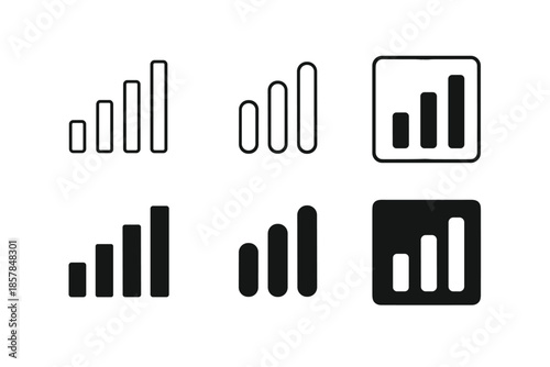 Set of signal strength icons in outline and solid fill styles for mobile devices