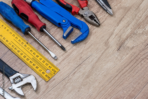 set of small craft, work tools on desk.
